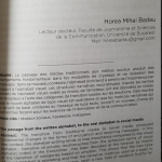 - « Noul journalism si nevoia de un Cod Etic al Retelelor Sociale » (Le nouveau journalisme et le besoin d’un Code Éthique des Réseaux Sociaux, trad.), in Rad, Ilie, Dir., L’indépendance des médias et la liberté d’expression, Ed. Tritonic, Bucarest, 2016, pp. 174 –
